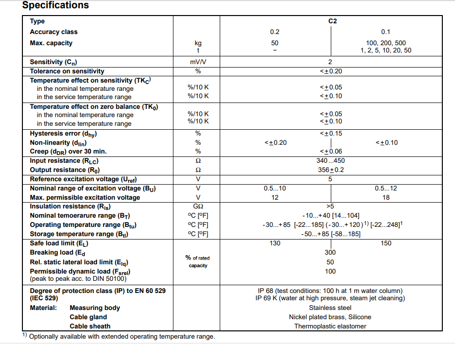 德國HBM稱重傳感器C2/20T產(chǎn)品技術(shù)參數(shù):