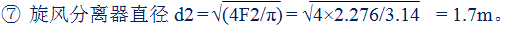 ⑥ 則旋風分離器截面積為F2 = Q/8500 = 19350/8500 = 2.276m2。