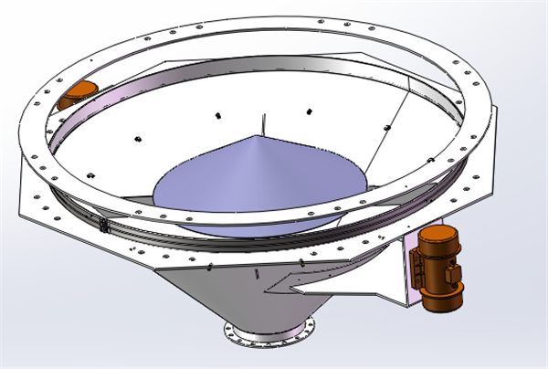 活化料斗由本體、蓋帽組件、彈簧組件、軟連接、法蘭和振動電機等組成。一般安裝在料倉底部,起破拱、助流、防止物料架橋的作用;適用于易架橋的物料、粉體物料或流動性較差的物料。